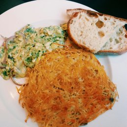 Customers rave about the gluten-free options, with one reviewer comparing their experience to finding a rare collector's item. The menu offers a variety of egg-based dishes, including the unique Jordanian omelet with eggplant and chicken sausage, along with fluffy pancakes and savory breakfast sandwiches.
